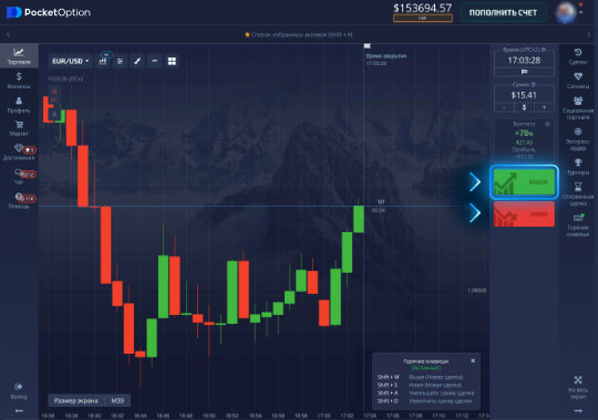 Торговать на Pocket Option легко! Выберите торговый актив, настройте предпочтительный тип графика и включите индикаторы для лучшего анализа рынка. Установите сумму сделки, время покупки и разместите заказ на понижение или повышение цены.