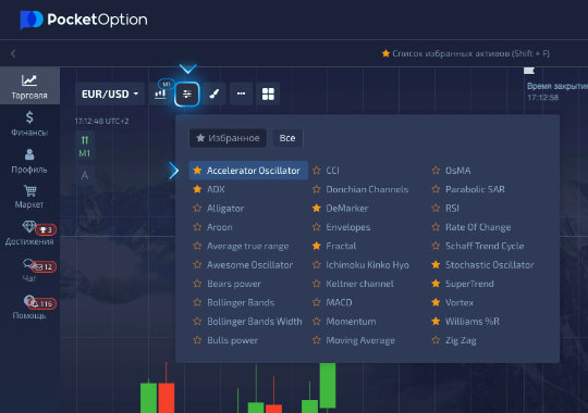 Чат — еще одна эксклюзивная функция, предлагаемая Pocket Option. Обращайтесь в службу поддержки за своевременным ответом, общайтесь с другими трейдерами, создавайте собственные чат-группы. Получайте мгновенную аналитическую информацию, будьте в курсе последних новостей и акций.